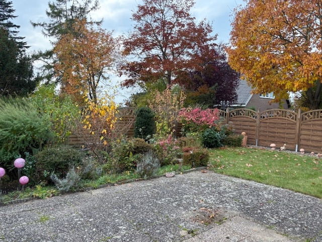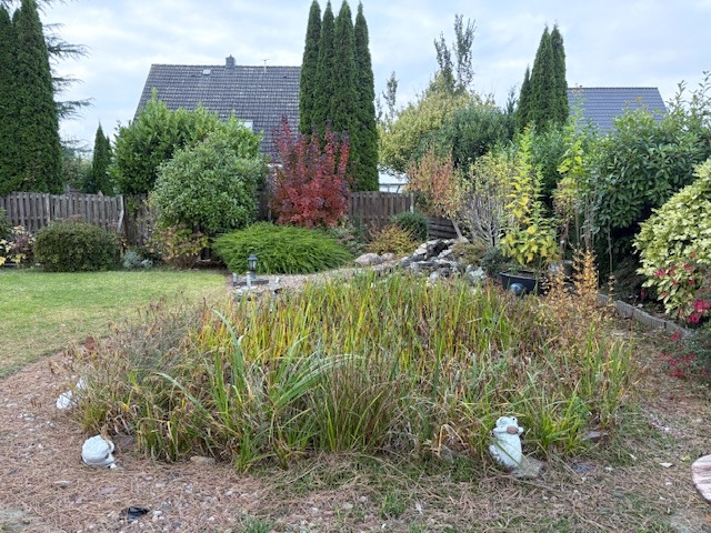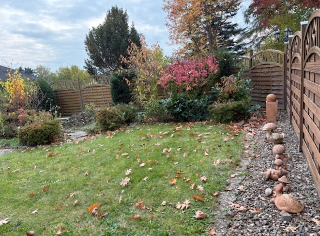 Das eingezäunte Grundstück ist ca.1044 m² groß und sehr liebevoll angelegt mit reichlich blühenden Sträuchern und Blumen sowie einem urigen Gartenteich. Aus Herzenslust gärtnern, Tierhaltung, Ihre Kinder unbesorgt spielen lassen oder ein Treffen mit Freunden zum Barbecue: In dem großzügigen Garten können Sie herrlich entspannen und die Natur genießen. Eine weitere Bebauung ist denkbar.